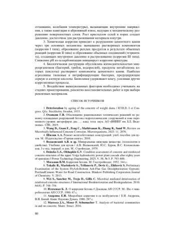 10. Исаченко Б. Л. О коррозии бетона // Доклады АН СССР. М.: Ин.-т микробиологии АН СССР, 1980. 67 с.