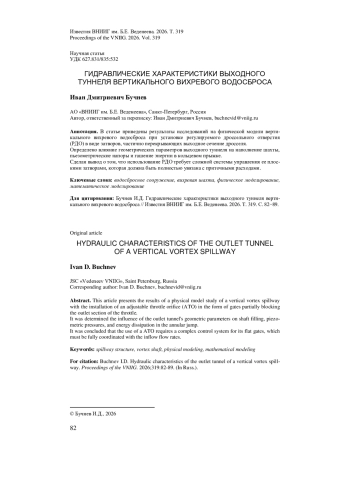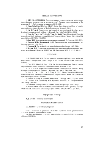 8. Бучнев И.Д. Результаты гидравлических исследований вертикальных вихревых водосбросов // Известия ВНИИГ им. Б.Е. Веденеева. 2025. Т. 315. С. 44-52.