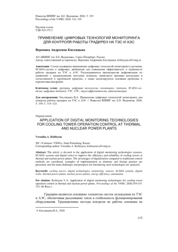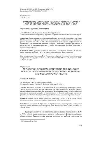 Статья посвящена применению цифровых технологий мониторинга (датчиков, SCADA-систем и цифровых двойников) для повышения эффективности и надёжности работы градирен на ТЭС и АЭС. Рассматриваются преимущества цифровизации по сравнению с традиционными методами контроля, приводятся примеры реализации в отечественной и зарубежной практике, а также анализируются основные проблемы и перспективы внедрения.