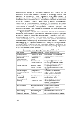 Градирни являются основным элементом систем охлаждения на ТЭС и АЭС, обеспечивая рассеивание тепла и стабильность функционирования оборудования. Традиционные методы контроля их работы основаны на периодических замерах и химической обработке воды, однако они не позволяют оперативно выявлять изменения в параметрах работы, что приводит к перерасходу воды, снижению энергоэффективности и ускоренному износу оборудования. Внедрение цифровых технологий мониторинга позволяет производить непрерывный контроль за состоянием градирни, повысить точность диагностики и вовремя обнаруживать отклонения в производственном процессе. Использование цифровых систем анализа данных предоставляет углублѐнное понимание процессов теплообмена и состояния конструктивных элементов градирен. Это позволяет перейти к проактивному обслуживанию и совершенствованию технологического процесса.