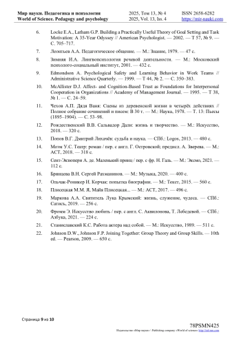 6. Locke E.A., Latham G.P. Building a Practically Useful Theory of Goal Setting and Task Motivation: A 35-Year Odyssey // American Psychologist. - 2002. - Т 57, № 9. - С. 705-717. EDN: GSFPUP