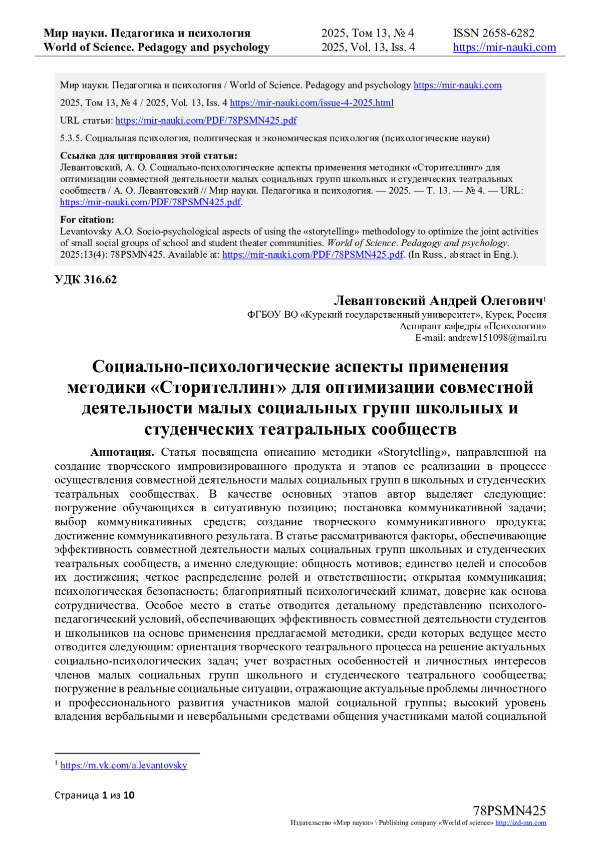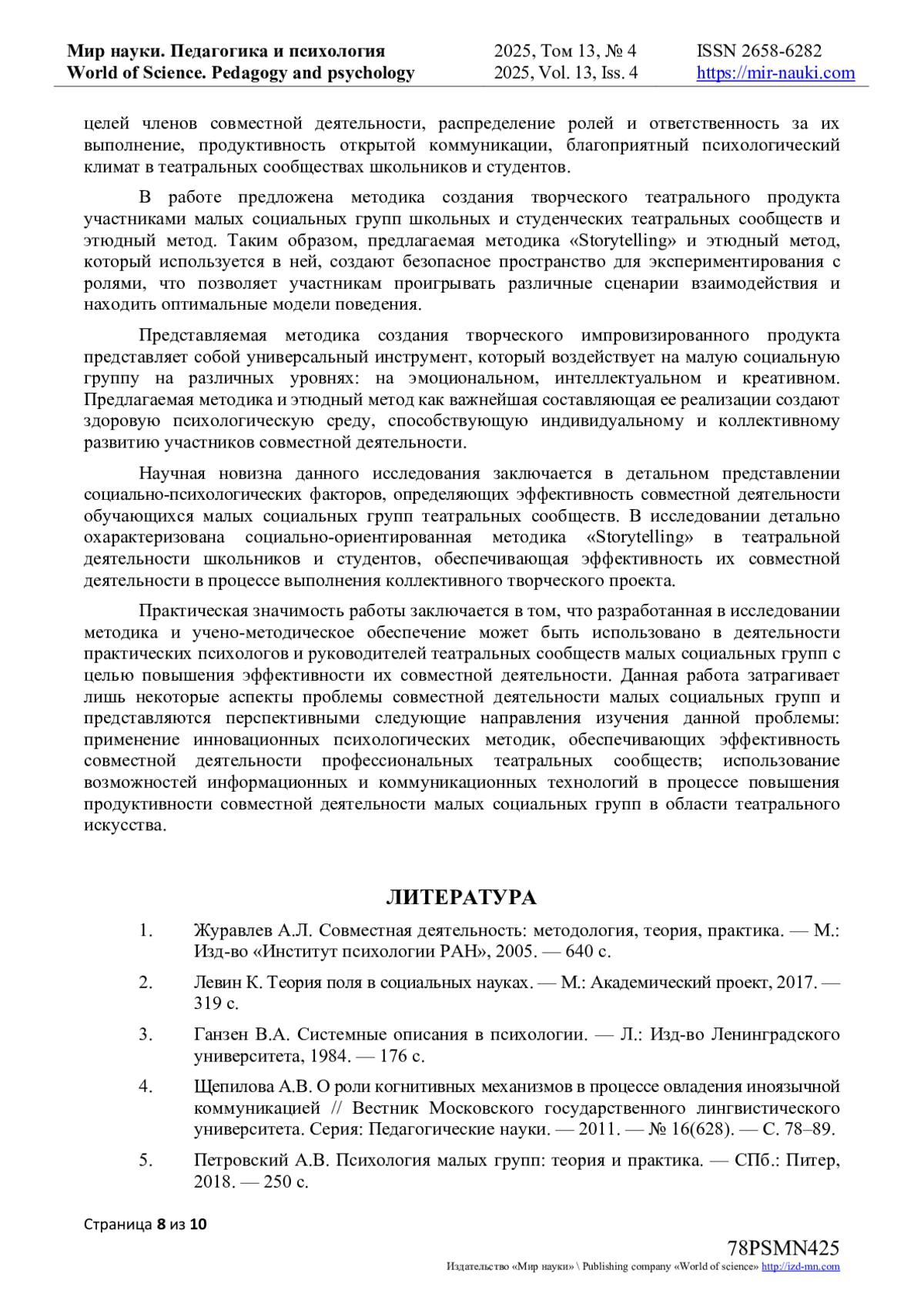 - ИЗДАТЕЛЬСТВО МИР НАУКИ