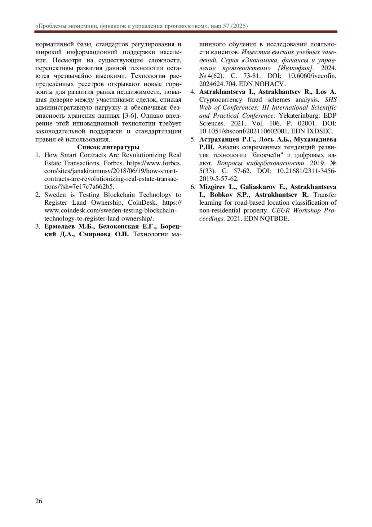 6. Mizgirev L., Galiaskarov E., Astrakhantseva I., Bobkov S.P., Astrakhantsev R. Transfer learning for road-based location classification of non-residential property. CEUR Workshop Proceedings. 2021. EDN: NQTBDE