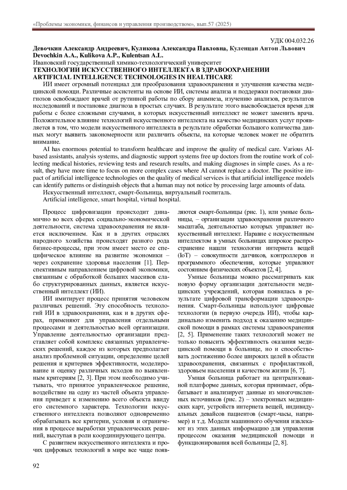 2. Остроухова Н.Г., Гажева А.В., Бурковская Ю.В. Искусственный интеллект в управлении здравоохранением: эффективные решения для будущего. М.: НИИОЗММ ДЗМ. 2025. 27 с. EDN: FJYYEW