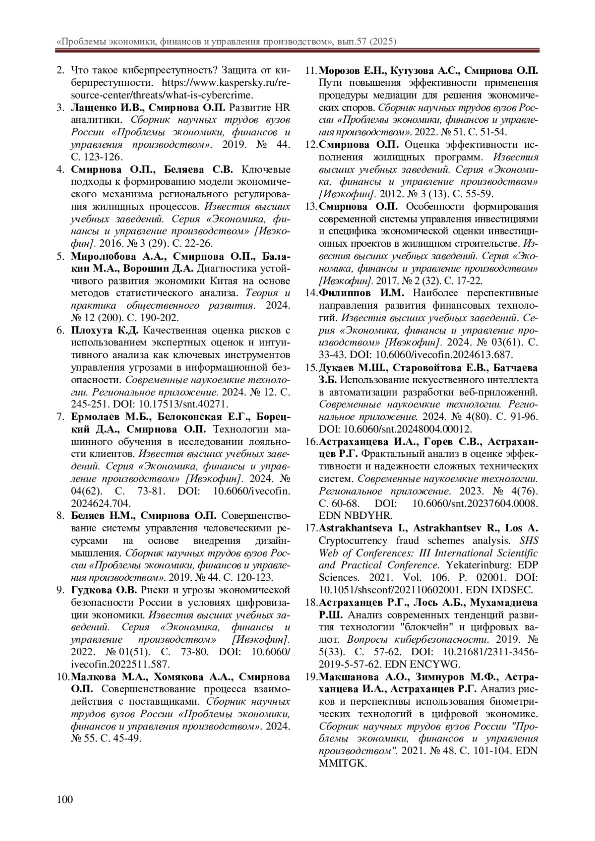 7. Ермолаев М.Б., Белоконская Е.Г., Борецкий Д.А., Смирнова О.П. Технологии машинного обучения в исследовании лояльности клиентов. Известия высших учебных заведений. Серия “Экономика, финансы и управление производством” [Ивэкофин]. 2024. № 04(62). С. 73-81. DOI: 10.6060/ivecofin.2024624.704 EDN: NOHACV