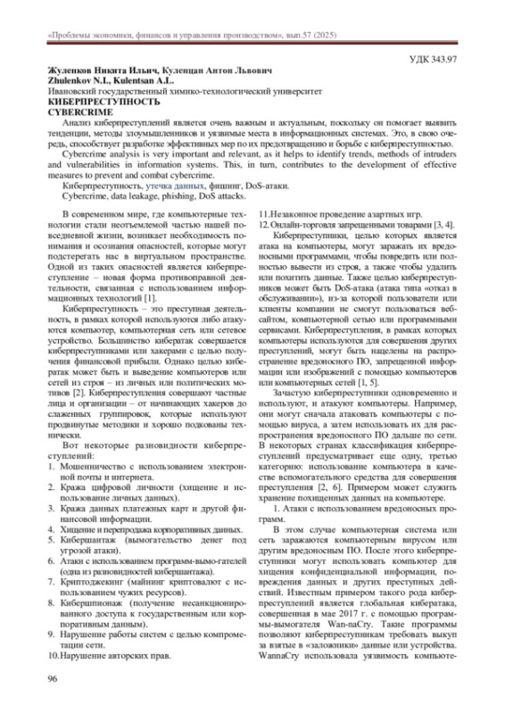 В современном мире, где компьютерные технологии стали неотъемлемой частью нашей повседневной жизни, возникает необходимость понимания и осознания опасностей, которые могут подстерегать нас в виртуальном пространстве. Одной из таких опасностей является киберпреступление – новая форма противоправной деятельности, связанная с использованием информационных технологий [1].