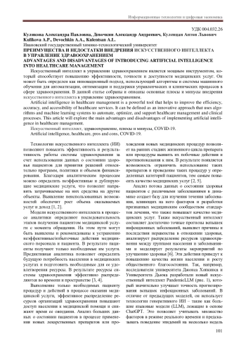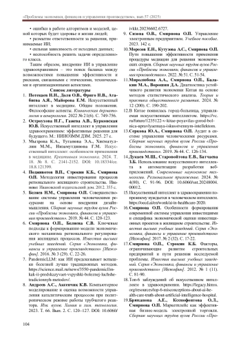 2. Остроухова Н.Г., Гажева А.В., Бурковская Ю.В. Искусственный интеллект в управлении здравоохранением: эффективные решения для будущего. М.: НИИОЗММ ДЗМ. 2025. 27 с. EDN: FJYYEW