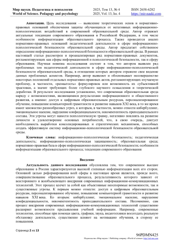 2. Байкова Л.А. Проблемы психолого-педагогического сопровождения формирования информационно-психологической безопасности обучающихся в вузе / Л.А. Байкова, Р.Е. Матвеев // Вестник Костромского государственного университета. Серия: Педагогика. Психология. Социокинетика. - 2022. - Т. 28, № 1. - С. 155-162. - URL: https://cyberleninka.ru/article/n/problemy-psihologo-pedagogicheskogo-soprovozhdeniya-formirovaniya-informatsionno-psihologicheskoy-bezopasnosti-obuchayuschihsya-v (дата обращения: 20.08.2025). DOI: 10.34216/2073-1426-2022-28-1-155-16 EDN: WCJYKD