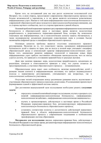 6. Бырканов А.В. Проблемы информационно-психологической безопасности в психологии / А.В. Бырканов // Общество: социология, психология, педагогика. - 2023. - № 1. - С. 95-99. - URL: https://cyberleninka.ru/article/n/problema-informatsionno-psihologicheskoy-bezopasnosti-v-psihologii (дата обращения: 20.08.2025). EDN: OOOADY