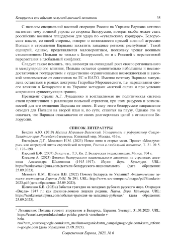 5. Межевич Н.М., Шимов В.В. (2022) Почему Беларусь не Украина? Аналитические записки института Европы РАН. № 291. URL: http://www.sov-europe.ru/images/pdf/Standarts-2023.pdf (дата обращения: 25.09.2023).