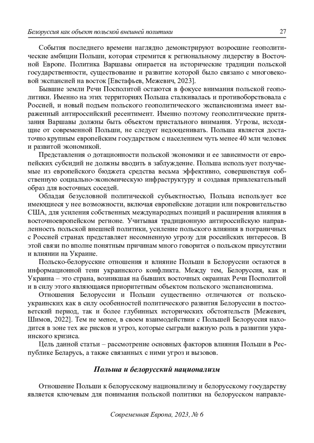 События последнего времени наглядно демонстрируют возросшие геополитические амбиции Польши, которая стремится к региональному лидерству в Восточной Европе. Политика Варшавы опирается на исторические традиции польской государственности, существование и развитие которой было связано с многовековой экспансией на восток [Евстафьев, Межевич, 2023].