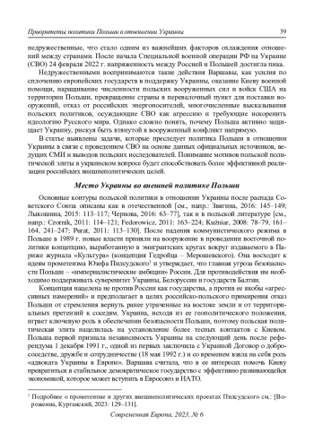 1. Ворожеина Я.А., Курганский А.А. (2023) Генезис и эволюция польской геополитической концепции Междуморья. Современная Европа. № 1. С. 127-138. DOI: 10.31857/S0201708323010102 EDN: OSKYHY