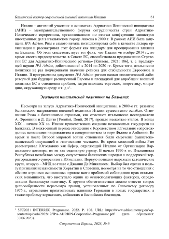 10. Frontini A., Denti D. (2017) Italy and EU Enlargement to the Western Balkans: the Europeanization of National Interests? Southeast European and Black Sea Studies. Vol. 7. Issue 4. P. 571-589. DOI: 10.1080/14683857.2017.1403153