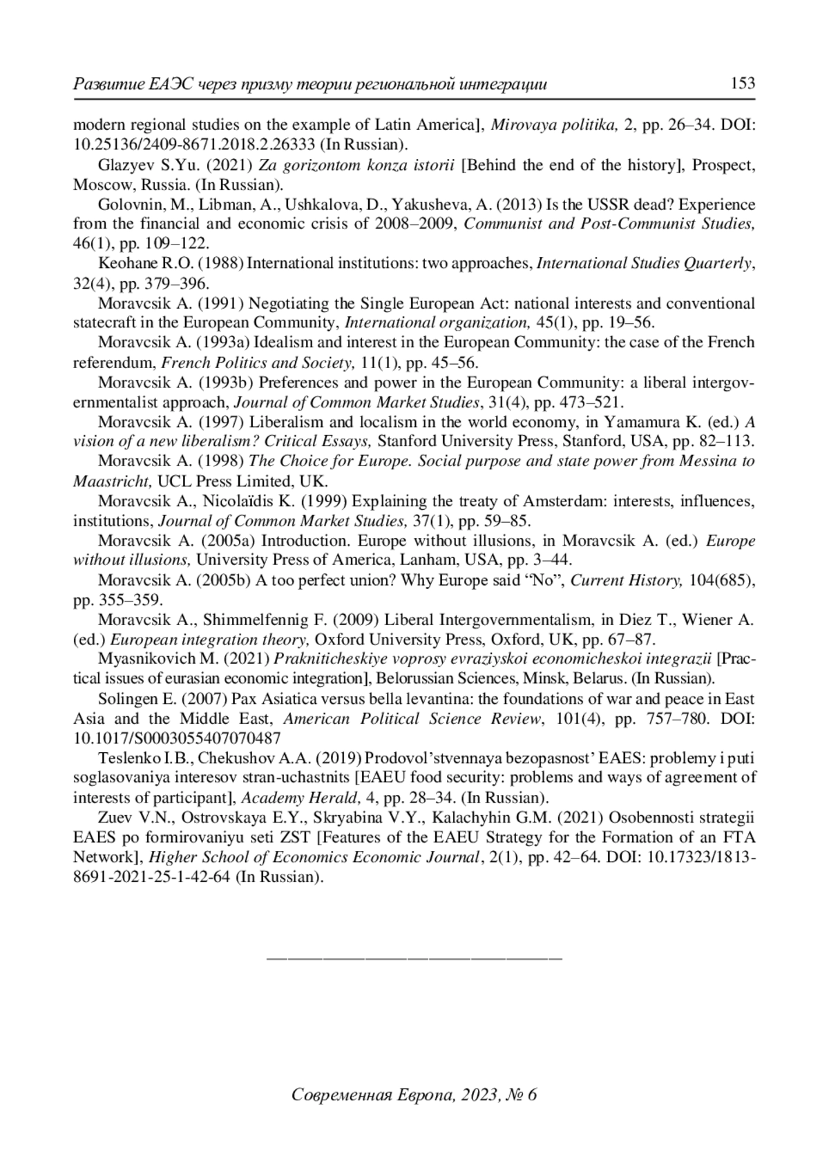 13. Moravcsik A. (1998) The Choice for Europe:Social Purpose and State Power from Messina to Maastricht. UCL Press Limited, UK. 528 p.