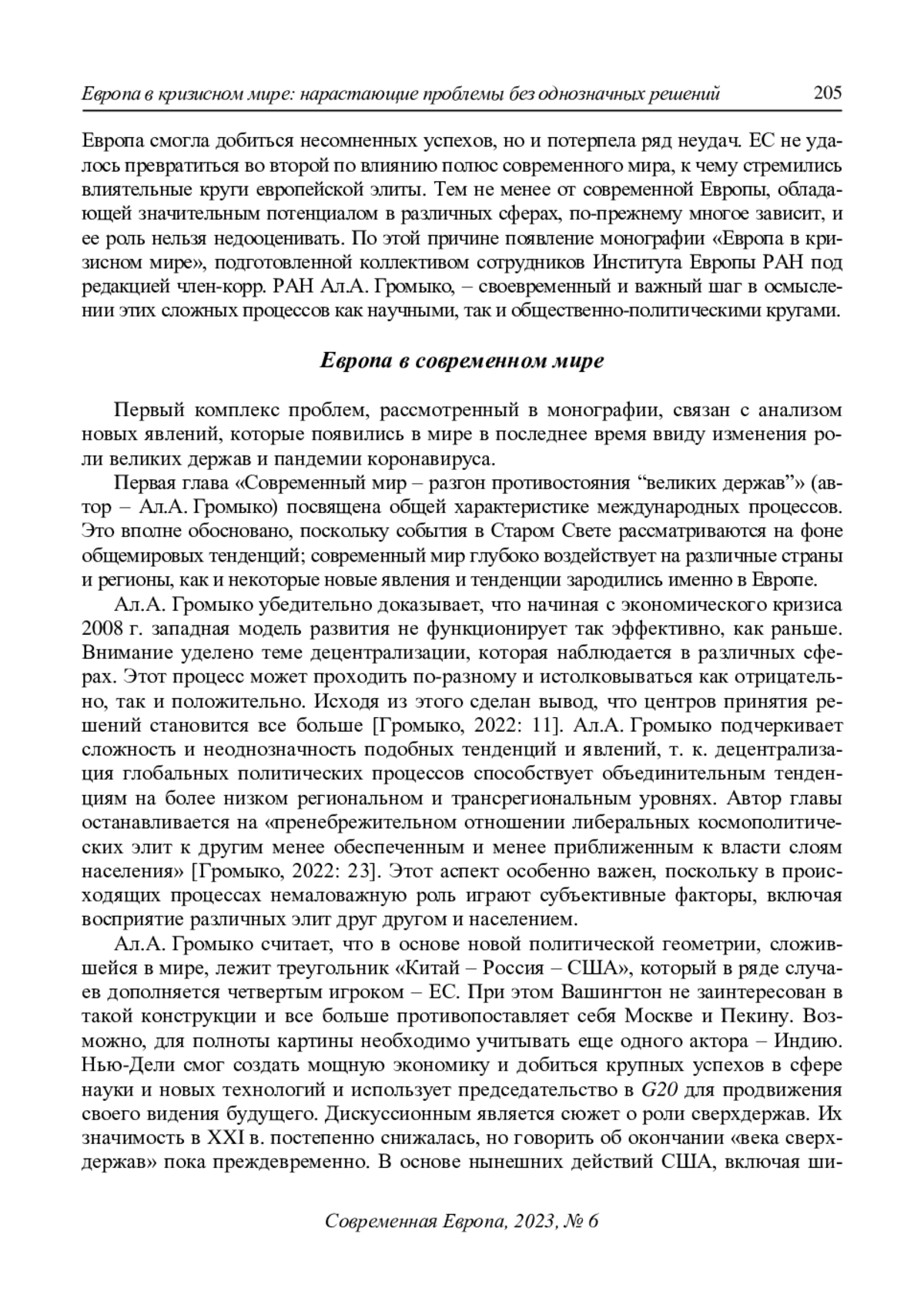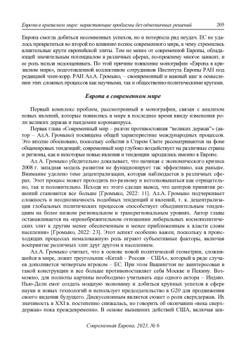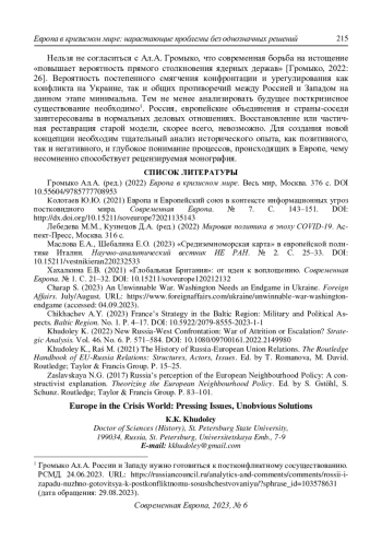 1. Европа в кризисном мире (2022) / Громыко Ал.А. (ред.)/ Весь мир, Москва. 376 с. DOI: 10.55604/9785777708953 EDN: PLQIBR