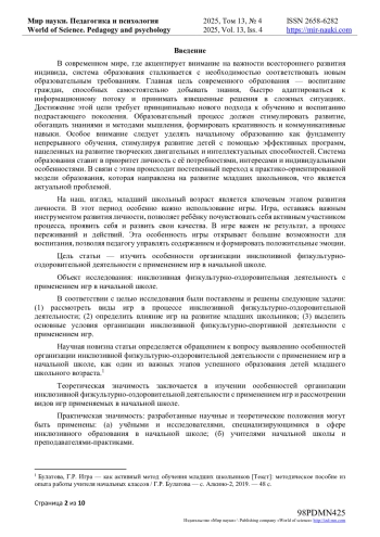 4. Хамбазарова, Ф.А. Подвижные игры на уроках физической культуры как средство обучения и воспитания учащихся начальной школы / Ф.А. Хамбазарова // Наука через призму времени. - 2021. - № 9(54). - С. 44-46. EDN: EJRHVT