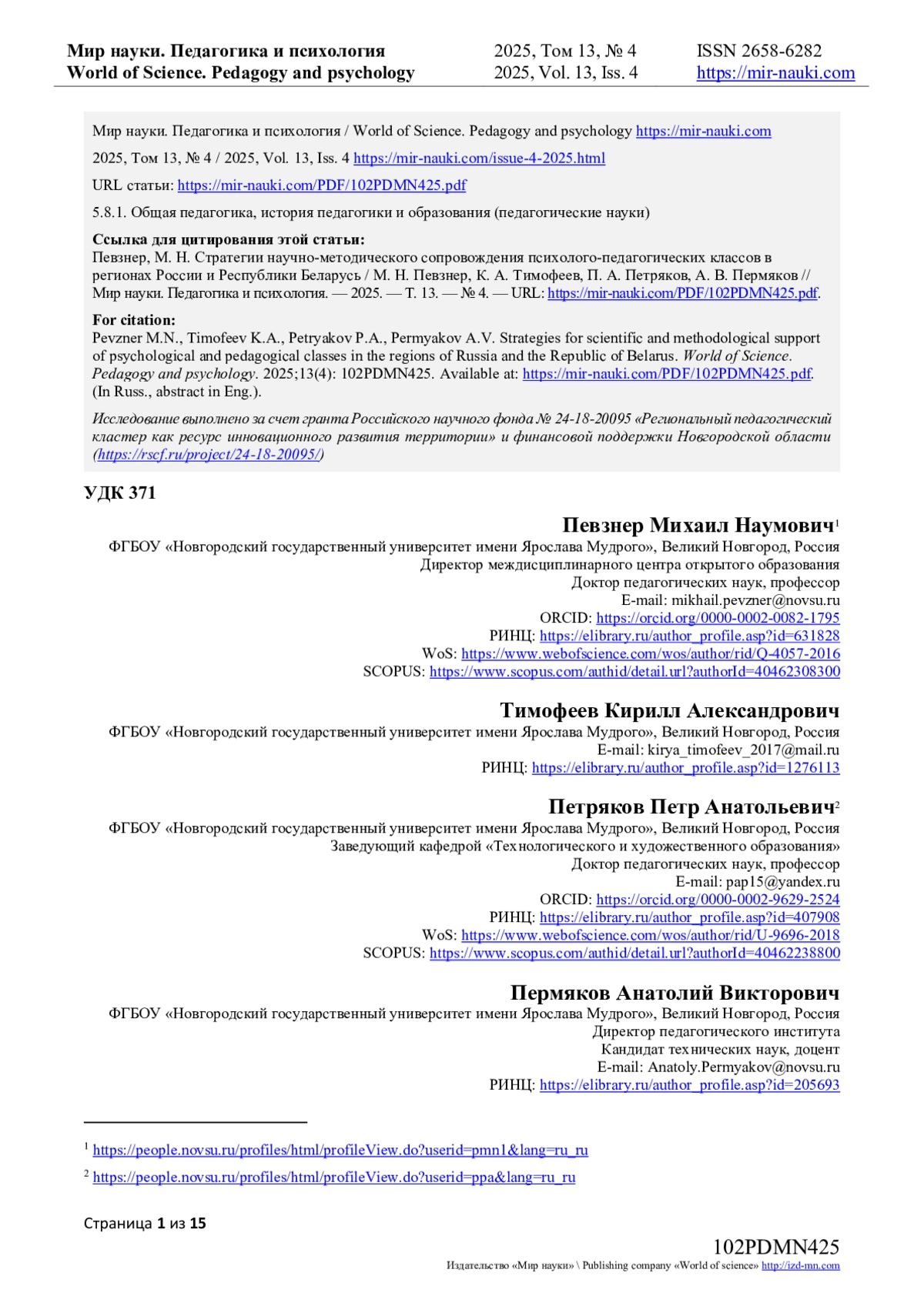 1. Алдошина М.И. Модельные практики психолого-педагогических классов и особенности их педагогического сопровождения // Вестник Мининского университета. - 2024. - № 1(46). - С. 1-17. EDN: LHYMGD