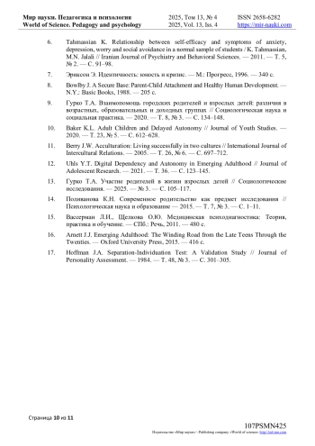 10. Baker K.L. Adult Children and Delayed Autonomy // Journal of Youth Studies. - 2020. - Т. 23, № 5. - С. 612-628.