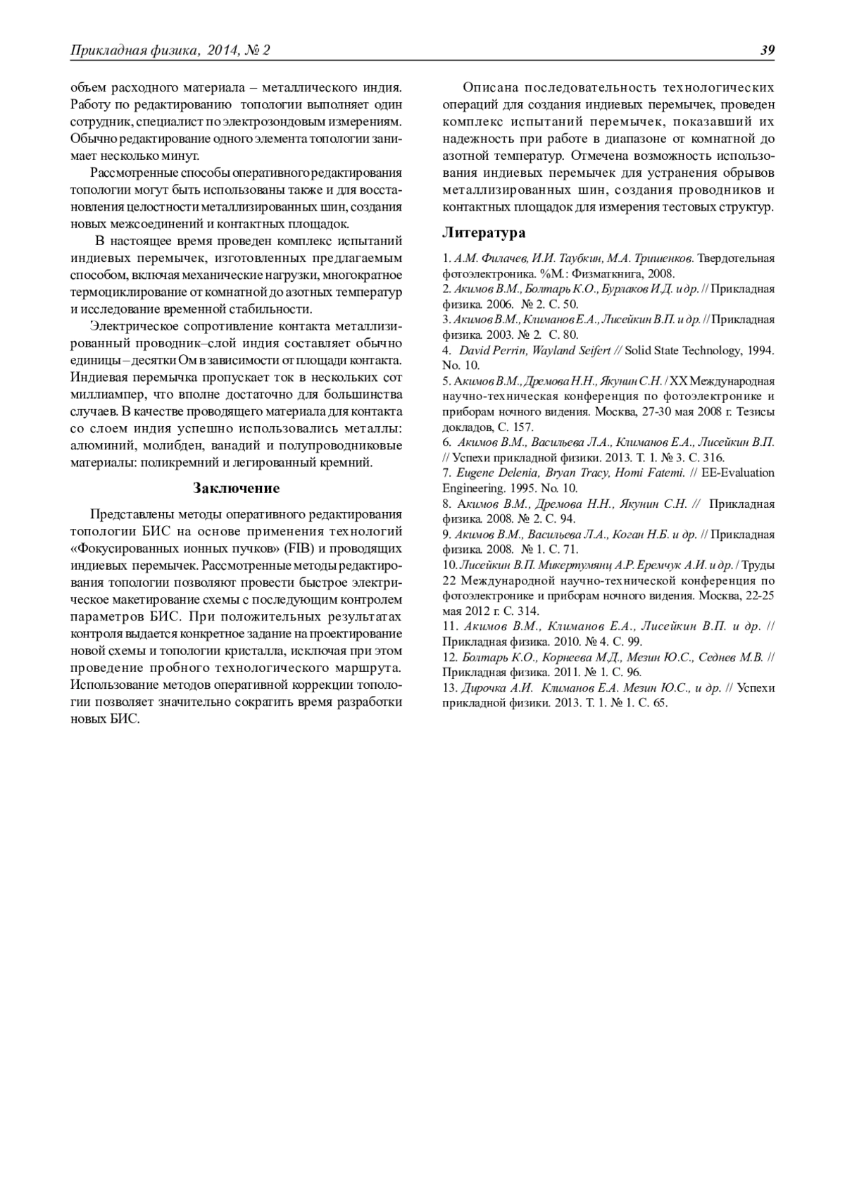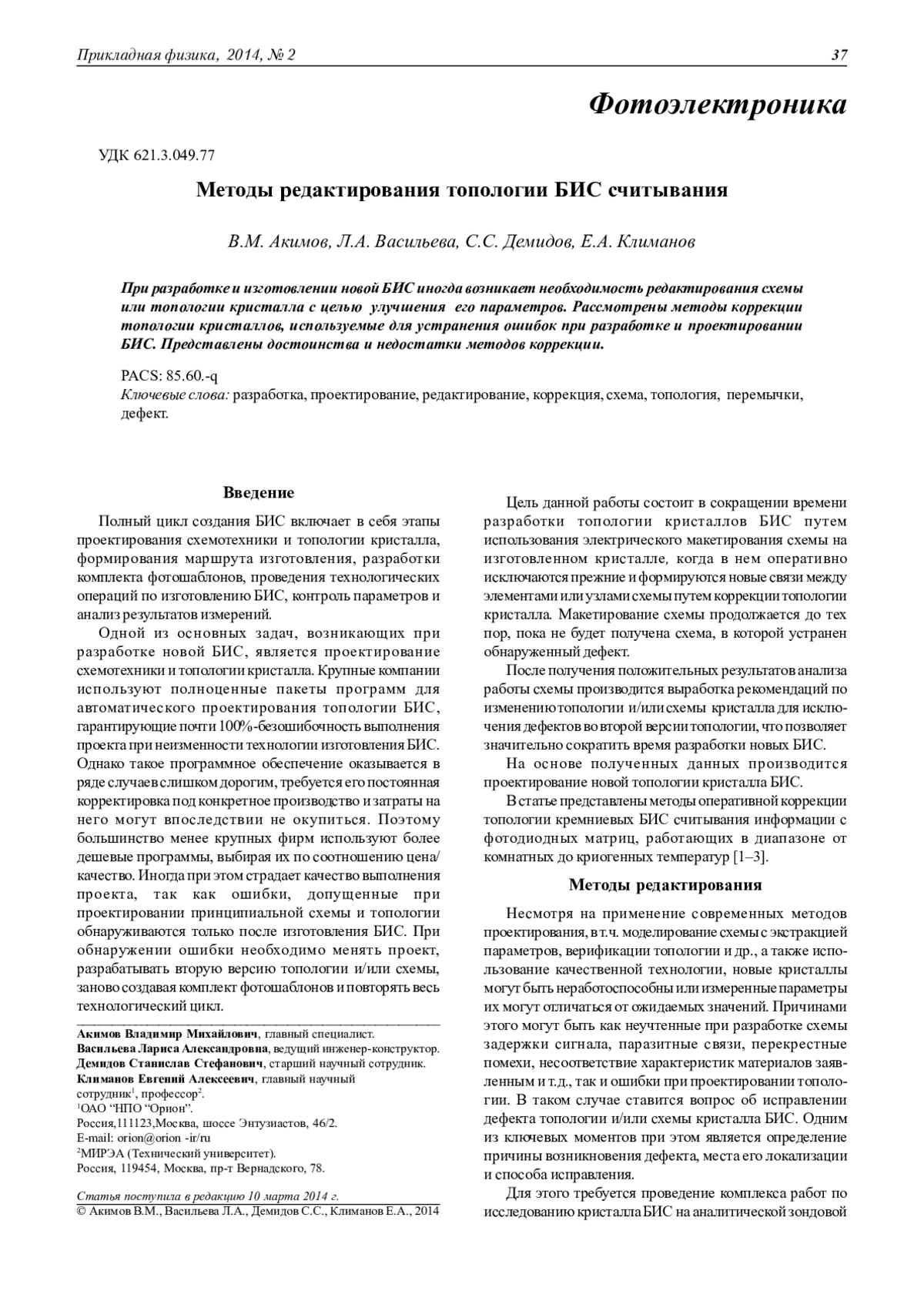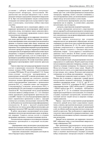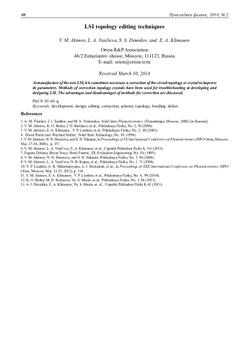 Представлены методы оперативного редактирования топологии БИС на основе применения технологий «Фокусированных ионных пучков» (FIB) и проводящих индиевых перемычек. Рассмотренные методы редактирования топологии позволяют провести быстрое электрическое макетирование схемы с последующим контролем параметров БИС. При положительных результатах контроля выдается конкретное задание на проектирование новой схемы и топологии кристалла, исключая при этом проведение пробного технологического маршрута. Использование методов оперативной коррекции топологии позволяет значительно сократить время разработки новых БИС.