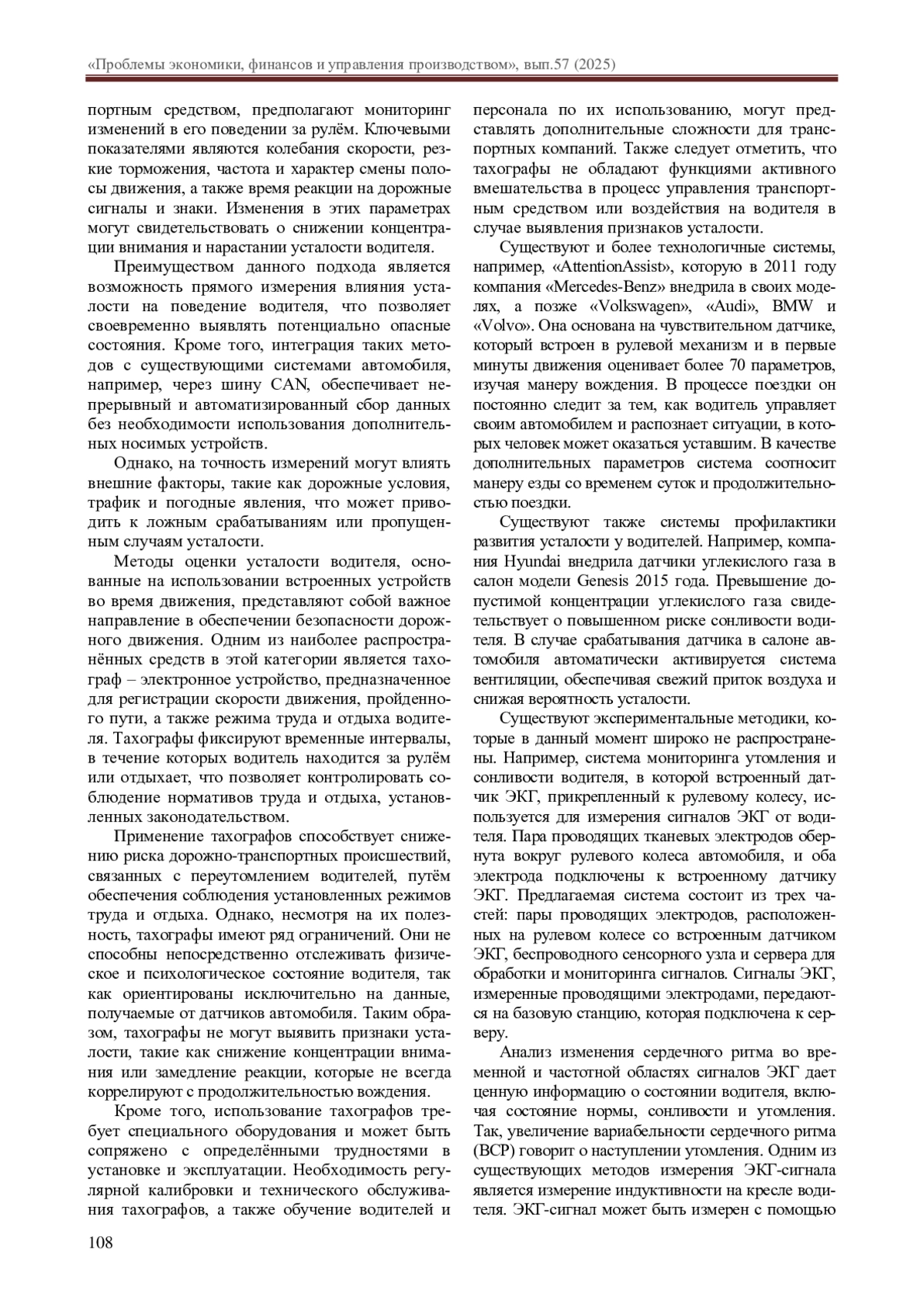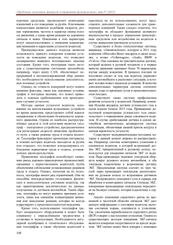 К существующим методам оценки усталости водителя относятся субъективные методы самооценки, физиологические методы, основанные на регистрации биосигналов, методы на основе измерения физических показателей, поведенческие методы, анализирующие поведение водителя за рулем при управлении транспортным средством, а также использование систем, регистрирующих режим работы и отдыха водителя.