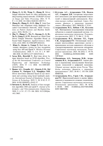 4. Zhang Z., Li H., Wang Y., Zhang H. Driver fatigue detection based on video monitoring and deep learning neural networks. EURASIP Journal on Image and Video Processing. 2021. N 75. P. 1-12. DOI: 10.1186/s13640-021-00575-1