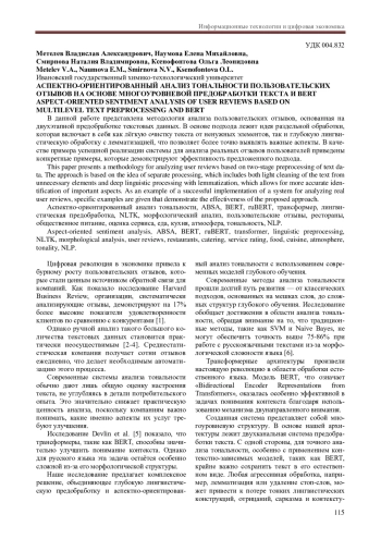 Цифровая революция в экономике привела к бурному росту пользовательских отзывов, которые стали ценным источником обратной связи для компаний. Как показало исследование Harvard Business Review, организации, систематически анализирующие отзывы, демонстрируют на 17% более высокие показатели удовлетворенности клиентов по сравнению с конкурентами [1]. Однако ручной анализ такого большого количества текстовых данных становится практически неосуществимым [2-4]. Среднестатистическая компания получает сотни отзывов ежедневно, что делает необходимым автоматизацию этого процесса.