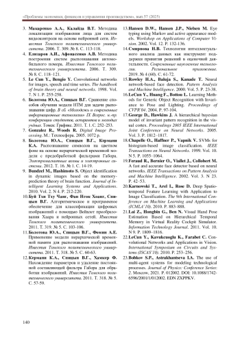 5. Le Cun Y., Bengio Y. Convolutional networks for images, speech and time series. The handbook of brain theory and neural networks. 1998. Vol. 7. N 1. P. 255-258.