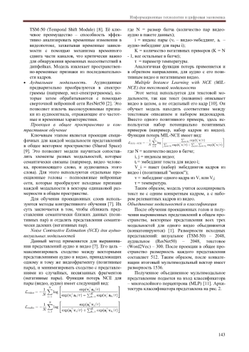 Ключевым достижением работы стало успешное объединение трех модальностей – визуальной, аудиальной и текстовой – в единую аналитическую систему. Использование временной модели TSM-50 для обработки видеопотока, сверточной сети ResNet50 для анализа аудиоспектрограмм и модели Word2Vec для векторного представления текстовой информации позволило создать комплексную систему анализа цифрового контента. Особую значимость имеет применение методов контрастивного обучения (Noise Contrastive Estimation и Multiple Instance Learning with NCE), которые обеспечили эффективную проекцию модальностно-специфичных представлений в общее векторное пространство.