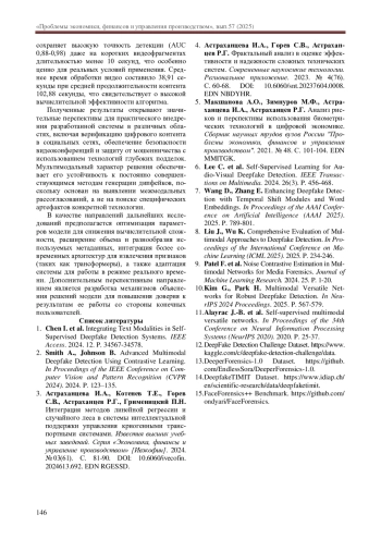1. Chen I. et al. Integrating Text Modalities in Self-Supervised Deepfake Detection Systems. IEEE Access. 2024. 12. P. 34567-34578.