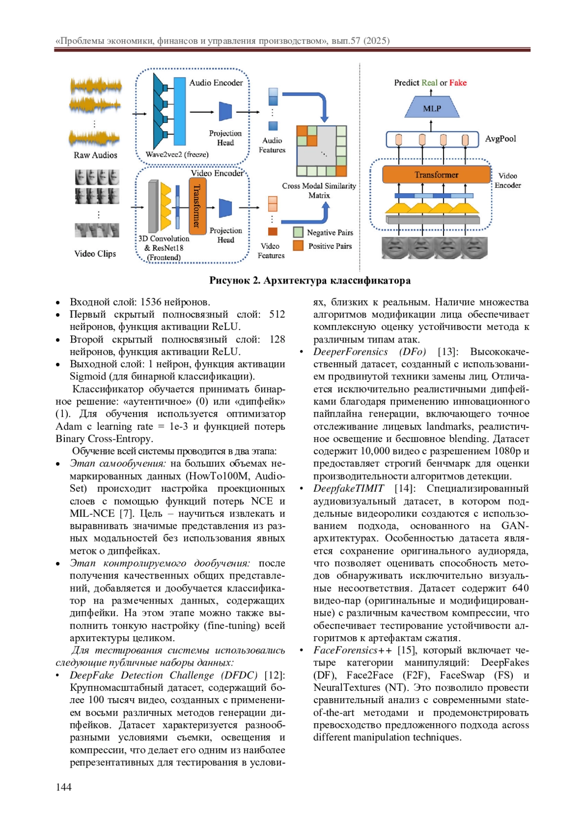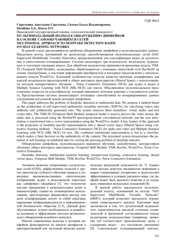 2. Smith A., Johnson B. Advanced Multimodal Deepfake Detection Using Contrastive Learning. In Proceedings of the IEEE Conference on Computer Vision and Pattern Recognition (CVPR 2024). 2024. P. 123-135.