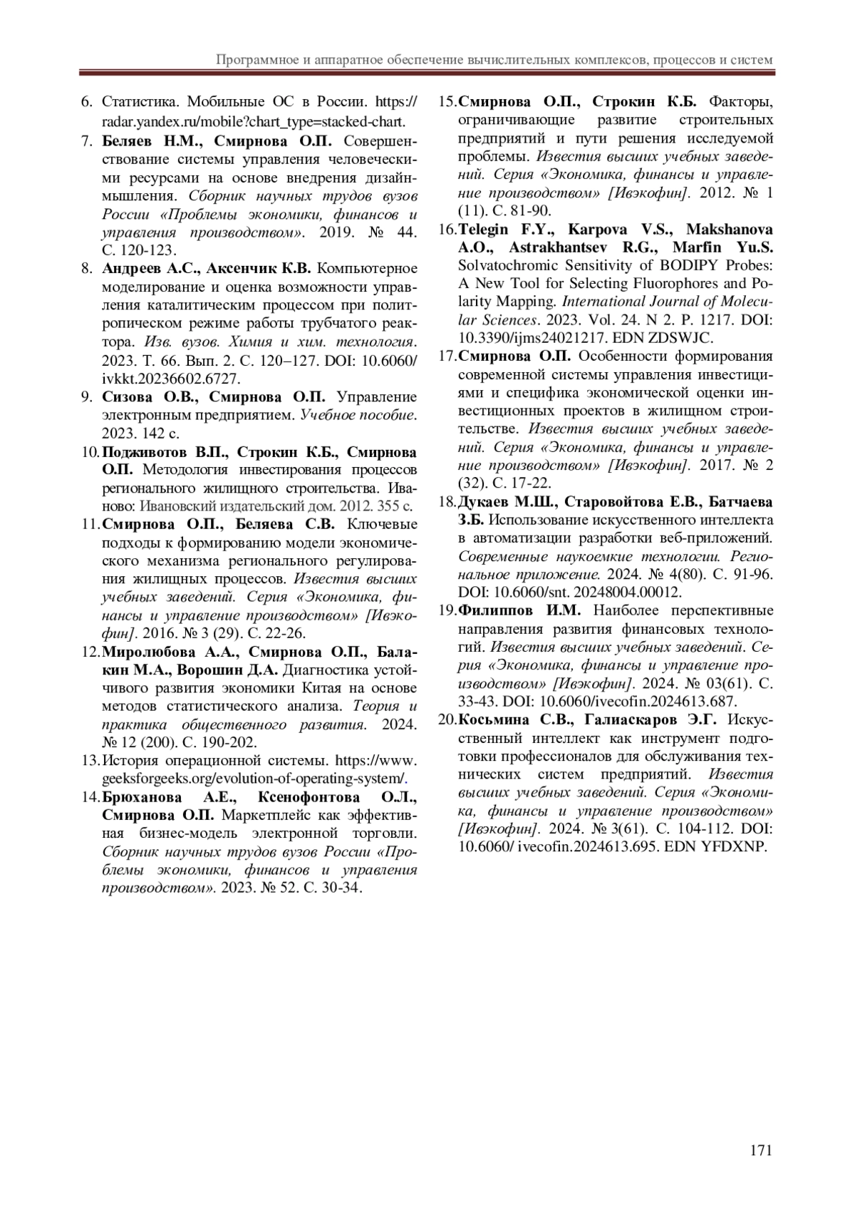 18. Дукаев М.Ш., Старовойтова Е.В., Батчаева З.Б. Использование искусственного интеллекта в автоматизации разработки веб-приложений. Современные наукоемкие технологии. Региональное приложение. 2024. № 4(80). С. 91-96. DOI: 10.6060/snt.20248004.00012 EDN: TLOUGX