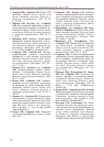 3. Лащенко И.В., Смирнова О.П. Развитие HR аналитики. Сборник научных трудов вузов России “Проблемы экономики, финансов и управления производством”. 2019. № 44. С. 123-126. EDN: BDGSFC