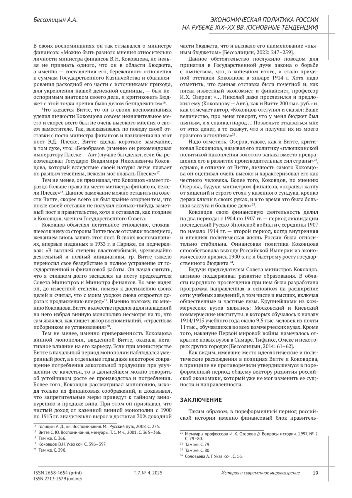 Bessolitsyn A.A. The Wine Monopoly in the Assessments of Contemporaries S.Yu. Witte. Bulletin of Volgograd State University. 2022. Series 4. Vol. 27. No. 3. Pp. 247-259. (in Rus.).