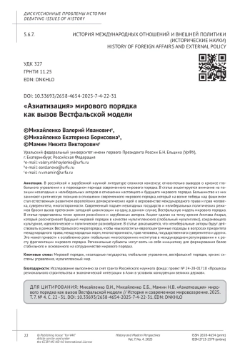 Bogaturov A.D., Lebedeva O.V. Evolution of the World Order and Russia’s Perceptions of the Outside World. International Affairs. 2023. No. 9. Pp. 24-31. (in Rus.).
