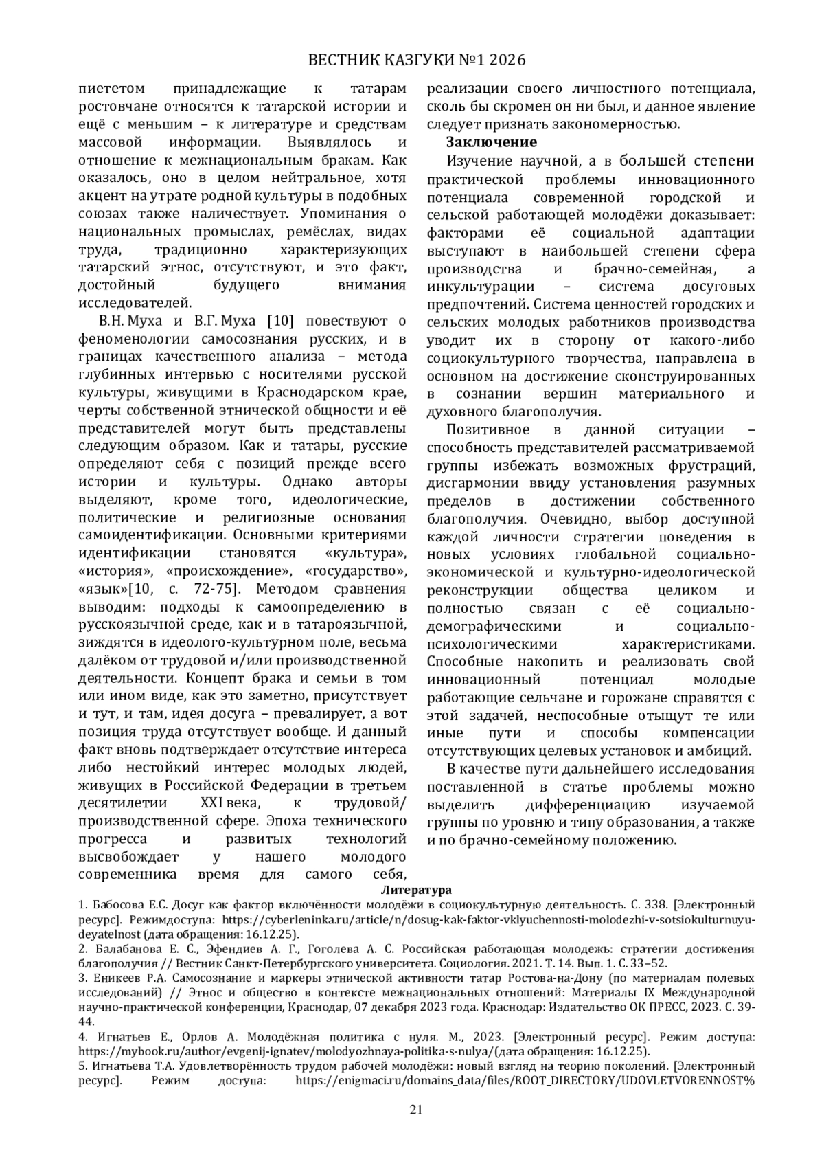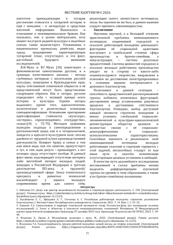 В центре внимания автора статьи - инновационный потенциал современной городской и сельской работающей молодёжи, характеризующий её инновационную культуру и определяющий векторы её социокультурной идентичности. Выявлены как минимум три фактора социокультурной идентичности и культурной самоидентичности молодых тружеников предприятий промышленного и сельскохозяйственного производства: служебный (трудовой), брачно-семейный и собственно культурный.