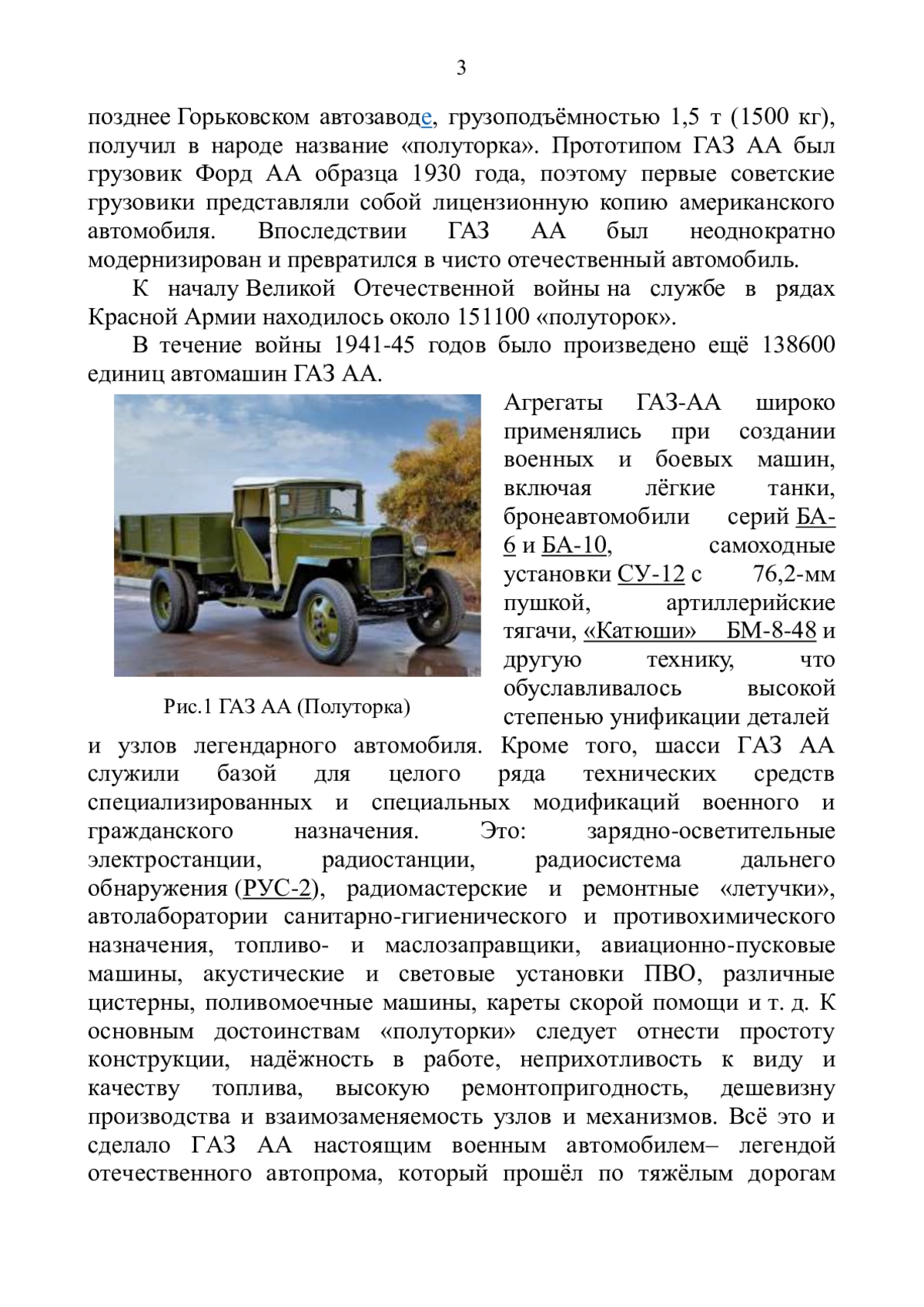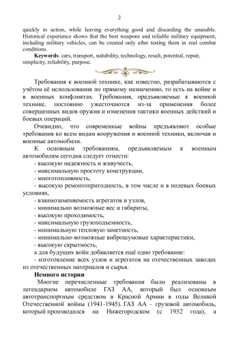 Любая война, как известно, способствует созданию и быстрому внедрению новейших технологий, видов оружия и технических средств. Однако в военное время практическое внедрение всех этих инноваций направлено, главным образом, на решение основной задачи - победы над врагом, но никак не для мирного строительства и улучшения жизни простых людей. Война очень быстро проверяет в действии оружие и технику, оставляя при этом всё хорошее и отметая непригодное. Исторический опыт показывает, что лучшее оружие и надежную военную технику, в том числе и военные автомобили, можно создать только после апробации их в реальных боевых условиях.