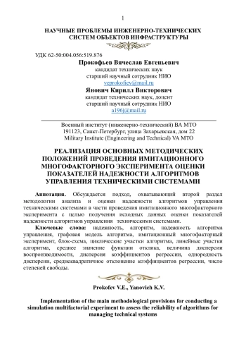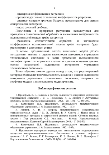 1. Прокофьев, В. Е. Подходы к расчету надежности алгоритмов управления техническими системами / В.Е. Прокофьев, К.В. Янович // Актуальные проблемы военно - научных исследований. - 2025. - № 1(33). - С. 280-290. EDN: ZJRNQB