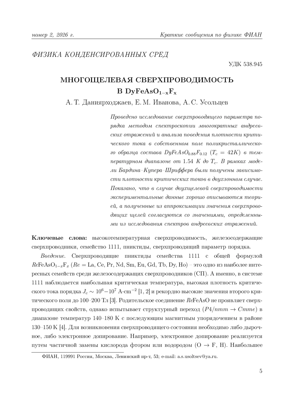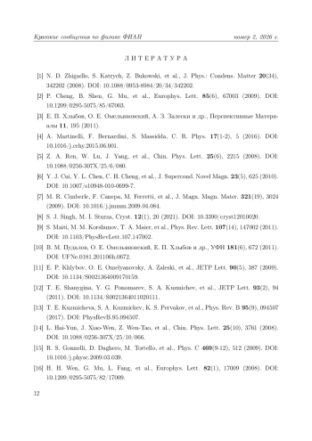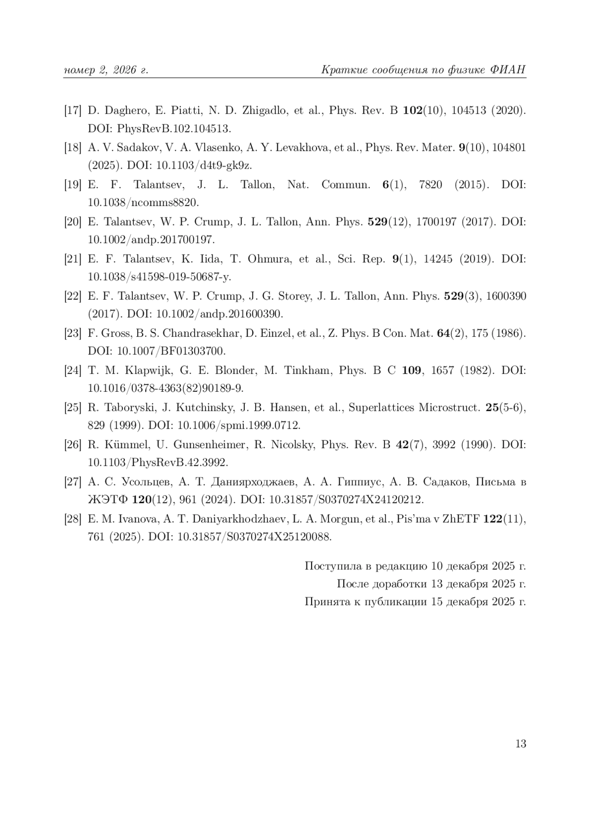 27. А. С. Усольцев, А. Т. Даниярходжаев, А. А. Гиппиус, А. В. Садаков, Письма в ЖЭТФ 120(12), 961 (2024). DOI: 10.31857/S0370274X24120212