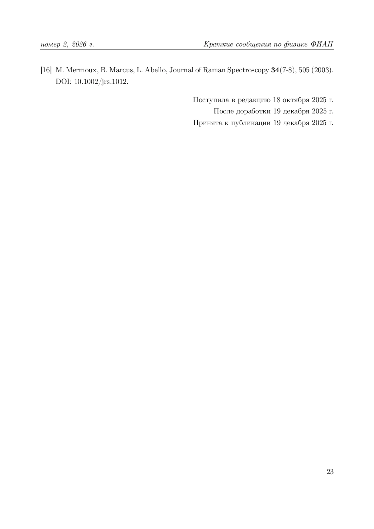 16. M. Mermoux, B. Marcus, L. Abello, Journal of Raman Spectroscopy 34(7-8), 505 (2003).