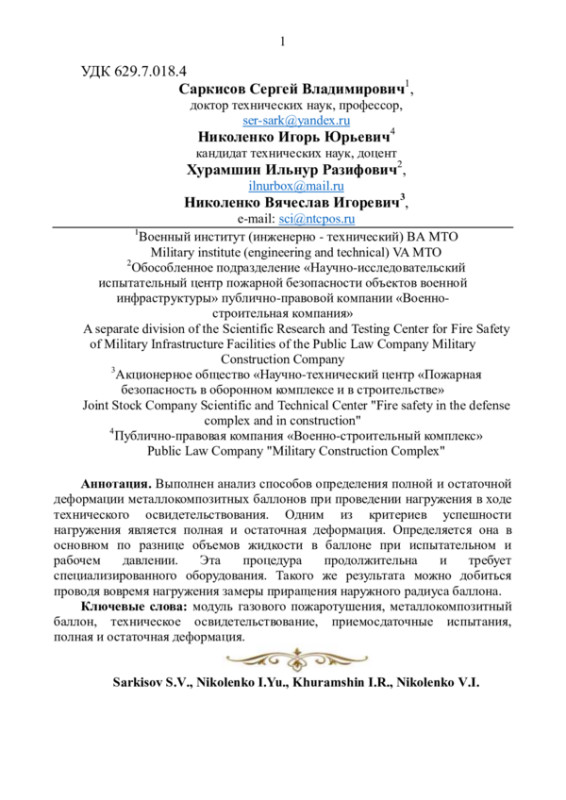 7. Николенко В.И., Хурамшин И.Р. Перспективы развития автоматических установок газового пожаротушения для объектов специального назначения // Специальные сооружения и объекты: актуальные проблемы изысканий, строительства и эксплуатации. Санкт-Петербург: 2021. С. 282-284.