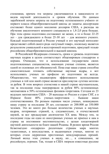 Ученые и научные кадры составляют стратегический резерв государства, а система их подготовки, включающая, в том числе и образование, входит в разряд государственных интересов, и является одной из основных и важнейших функций любой страны. В связи с этим любое уважающее себя государство вынуждено нести значительные затраты на подготовку специалистов с учеными степенями, причем эти затраты увеличиваются в зависимости от видов научной деятельности и сроков обучения.