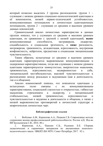 12. Пашкин С.Б., Лисовская Н.Б., Саркисова Е.А. Копинг - поведение личности как ресурс профессиональной адаптации военнослужащих // Актуальные проблемы военно - научных исследований. 2020. № 6(7). С. 364-391. EDN: CPITJC