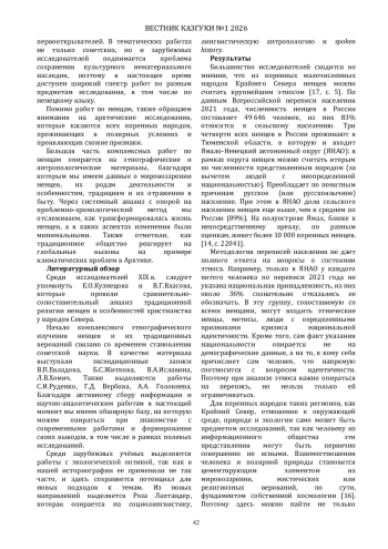 6. Квашнин Ю.Н. Этнические процессы и хозяйство у коренного населения Надымского района ЯНАО // Вестник археологии, антропологии и этнографии. №5. - Тюмень, 2004.