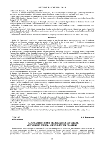 15. Laptander R. The Yamal Nenets’ traditional and contemporary observations of climate change // Ecology and Society. 2023. Vol. 28, no. 1. Art. 18.