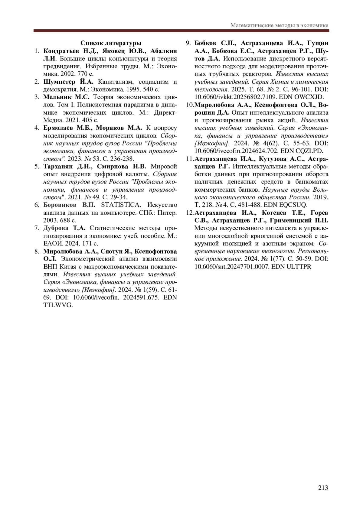 4. Ермолаев М.Б., Моряков М.А. К вопросу моделирования экономических циклов. Сборник научных трудов вузов России “Проблемы экономики, финансов и управления производством”. 2023. № 53. С. 236-238. EDN: QDQCCV