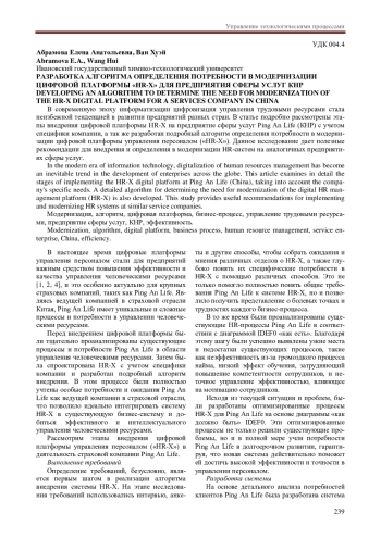 В современную эпоху информатизации цифровизация управления трудовыми ресурсами стала неизбежной тенденцией в развитии предприятий разных стран. В статье подробно рассмотрены этапы внедрения цифровой платформы HR-X на предприятие сферы услуг Ping An Life (КНР) с учетом специфики компании, а также разработан подробный алгоритм определения потребности в модернизации цифровой платформы управления персоналом («HR-X»). Данное исследование дает полезные рекомендации для внедрения и определения в модернизации HR-систем на аналогичных предприятиях сферы услуг.