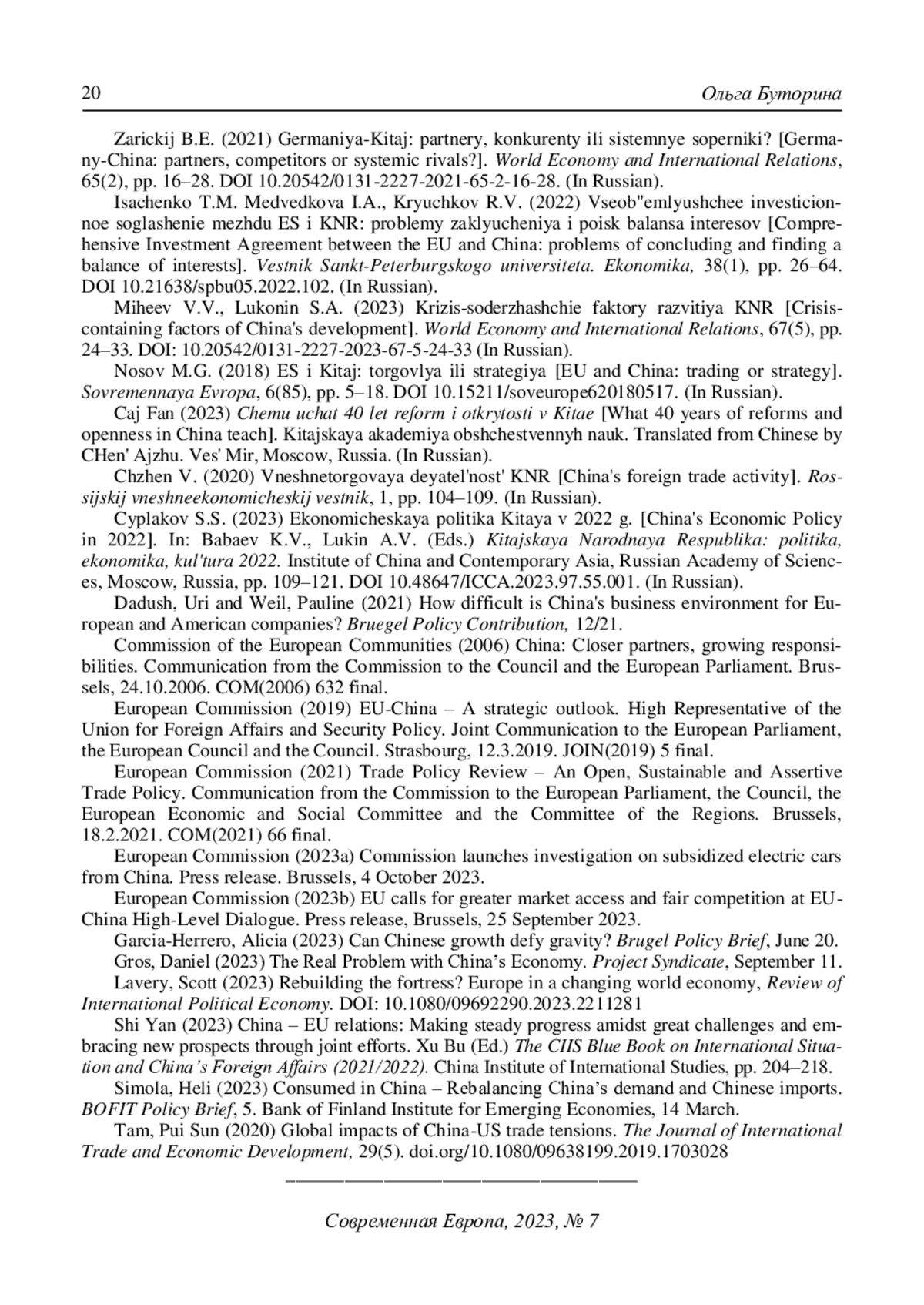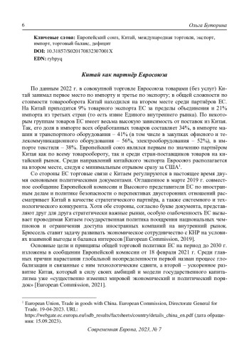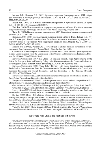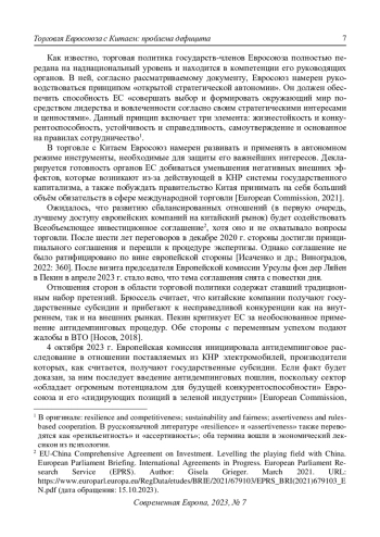 8. Носов М.Г. (2018) ЕС и Китай: торговля или стратегия. Современная Европа. № 6(85). С. 5-18. DOI: 10.15211/soveurope620180517 EDN: ZCRYPU