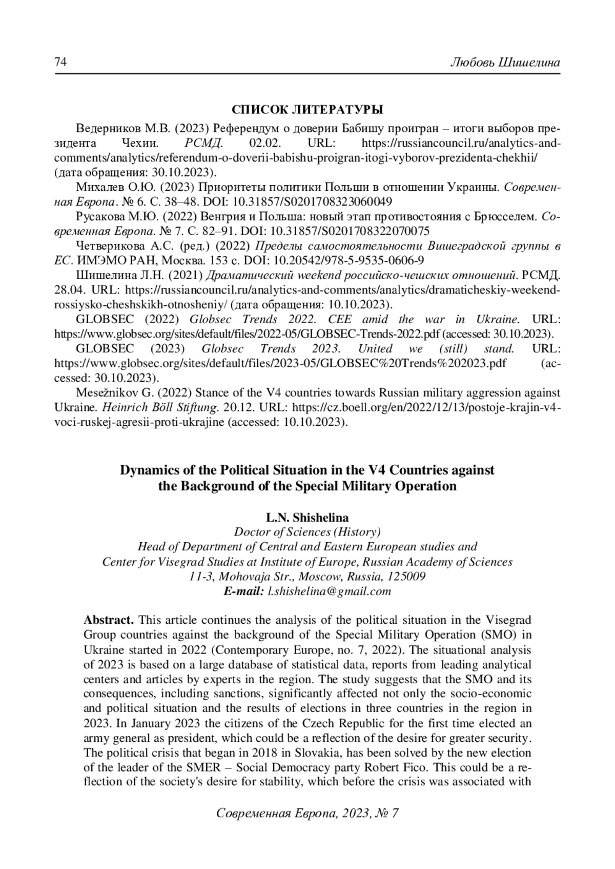 4. Четверикова А.С. (ред.) (2022) Пределы самостоятельности Вишеградской группы в ЕС. ИМЭМО РАН, Москва. 153 с. DOI: 10.20542/978-5-9535-0606-9