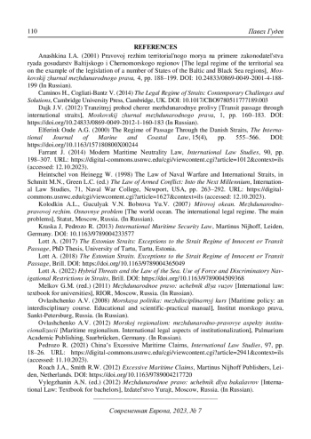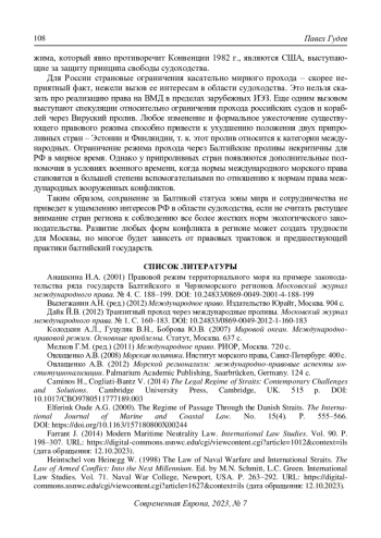 9. Elferink Oude A.G. (2000). The Regime of Passage Through the Danish Straits. The International Journal of Marine and Coastal Law. No. 15(4). P. 555-566. DOI: 10.1163/157180800X00244 EDN: AMPDIV
