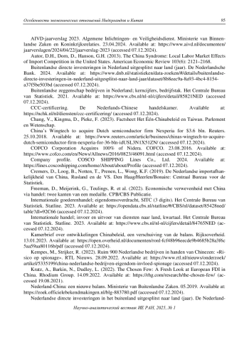 17. Kempes, M., Strijker, R. (2022).Ruim 900 Nederlandse bedrijven in handen van Chinezen: “Risico op spionage”. RTL Nieuws. 28.09.2022. Available at: https://www.rtl.nl/nieuws/onderzoek/artikel/5335199/china-nederlandse-bedrijven-eigendom-invloed-spionage (accessed 07.12.2024).